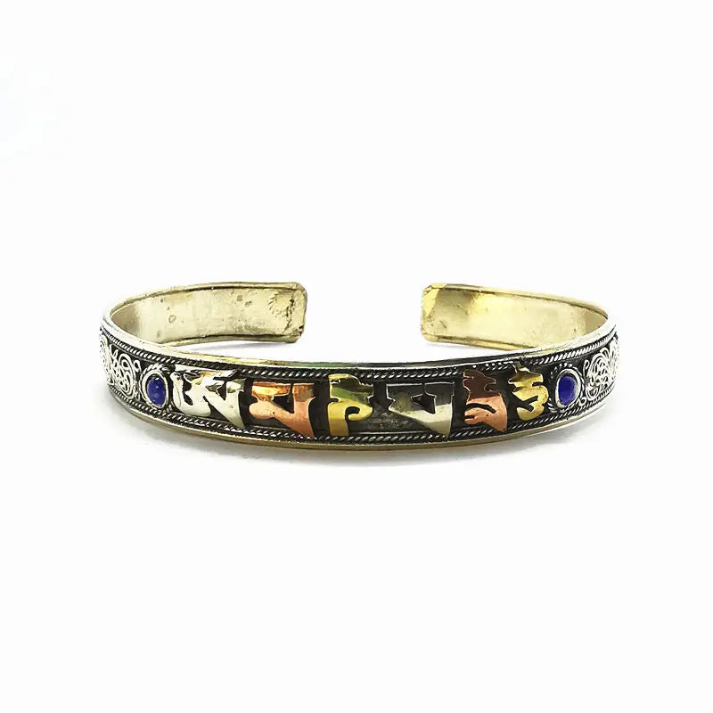 Son profil fin (≈ 9,5–10 mm) et son format ouvert et ajustable offrent un confort immédiat. Le métal mêlant cuivre rouge et laiton développe avec le temps une légère patine naturelle, appréciée pour son caractère vivant ; un simple chiffon doux permet de lui rendre de l’éclat si souhaité. La gravure des six syllabes sacrées agit comme une amulette : porter le jonc, c’est se souvenir de la bienveillance, de la sagesse et de la compassion chères au bouddhisme.